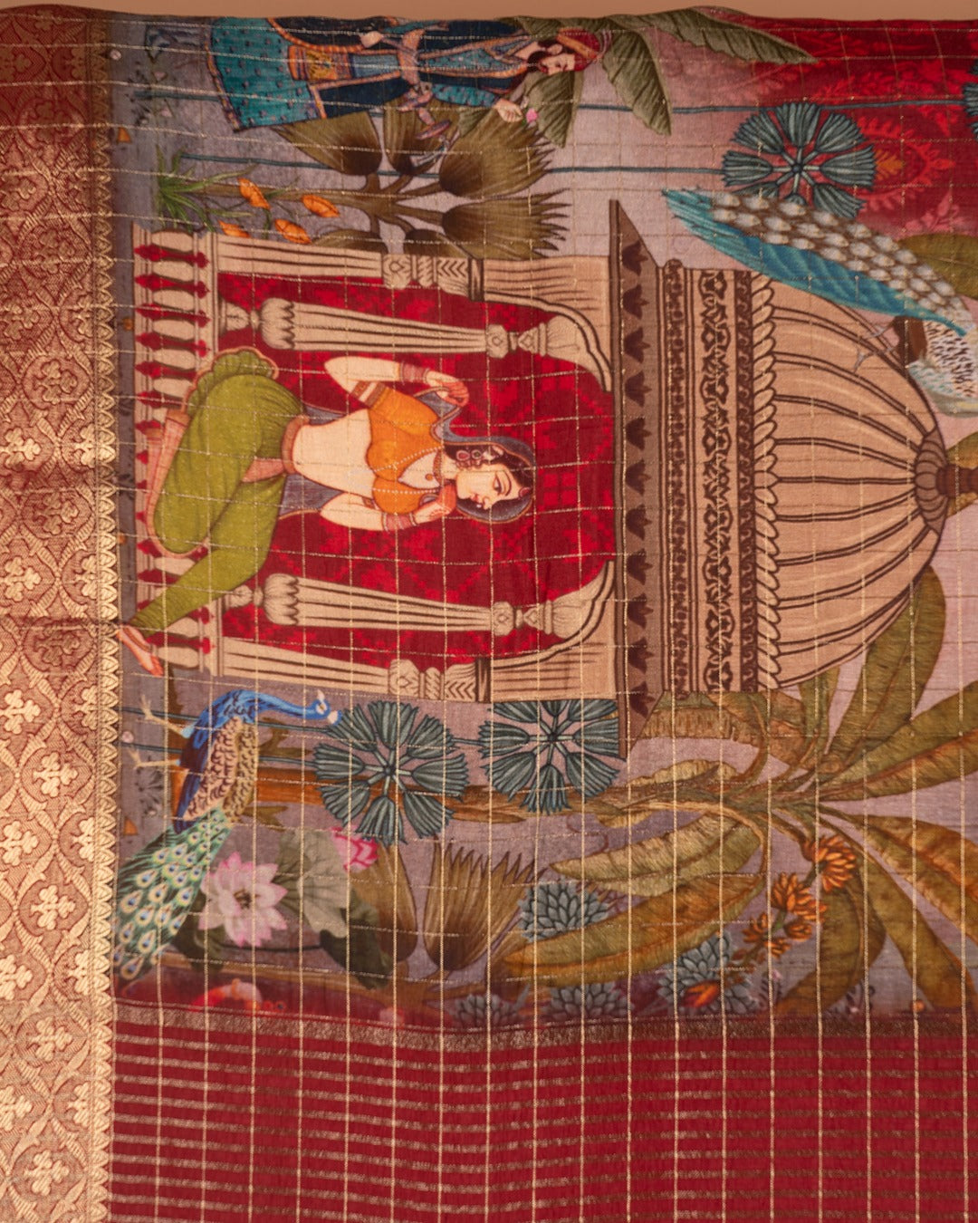 Color: Maroon with Golden Zari and Multicolored Royal Motifs